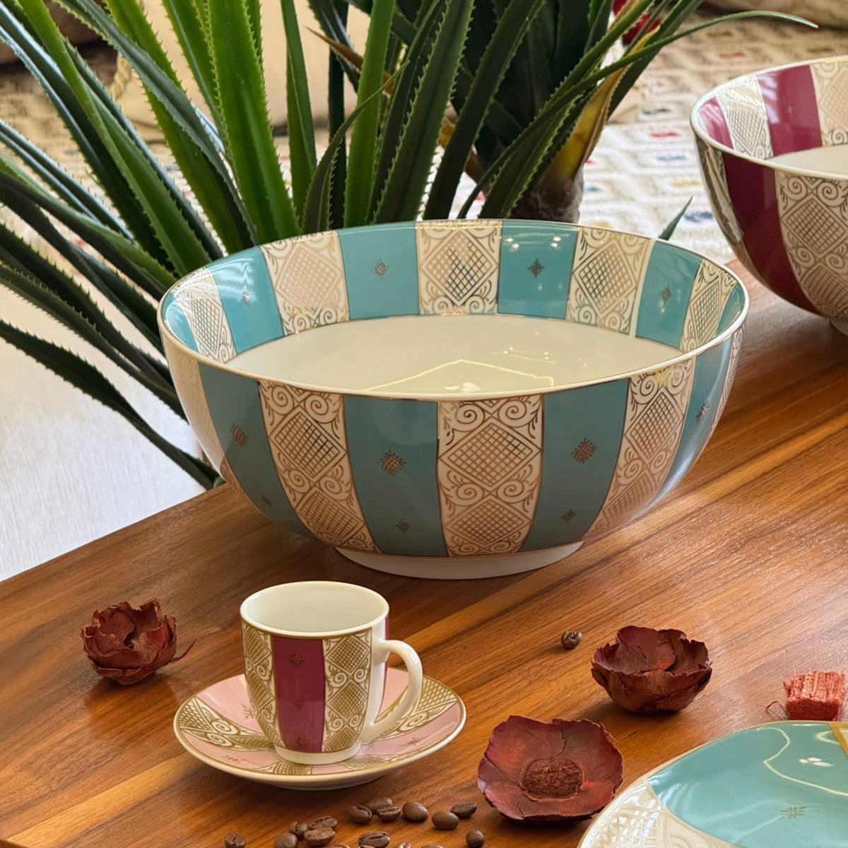 ✨Bol en porcelaine idéal pour présenter vos gâteaux, servir des salades lors d’un buffet ou à table pour impressionner vos invités. Parfait également pour les mariages traditionnels marocains.