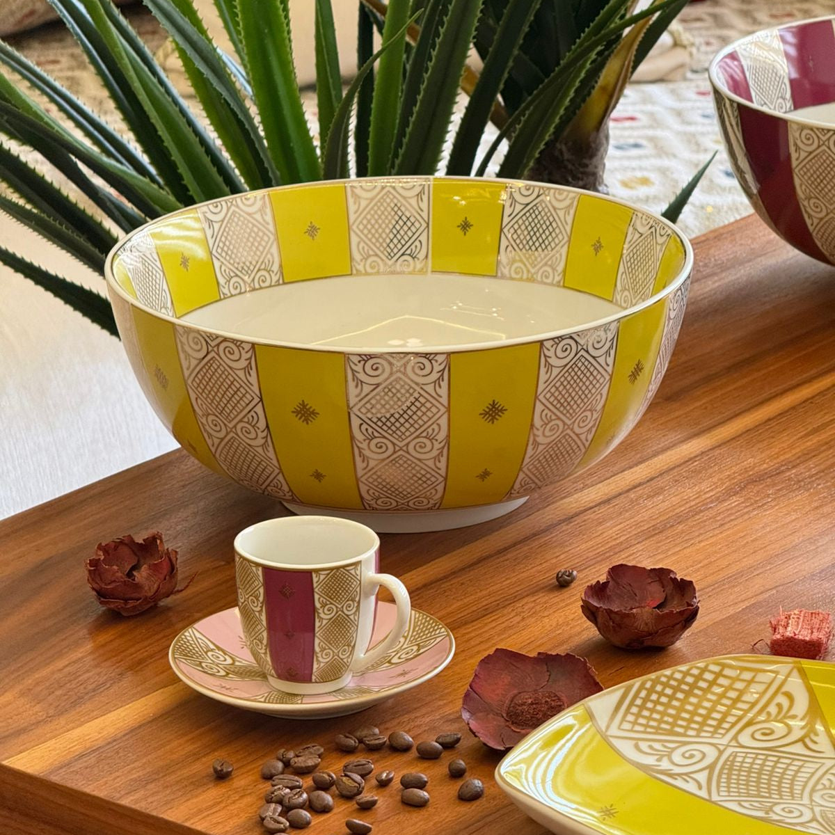 ✨Bol en porcelaine idéal pour présenter vos gâteaux, servir des salades lors d’un buffet ou à table pour impressionner vos invités. Parfait également pour les mariages traditionnels marocains.