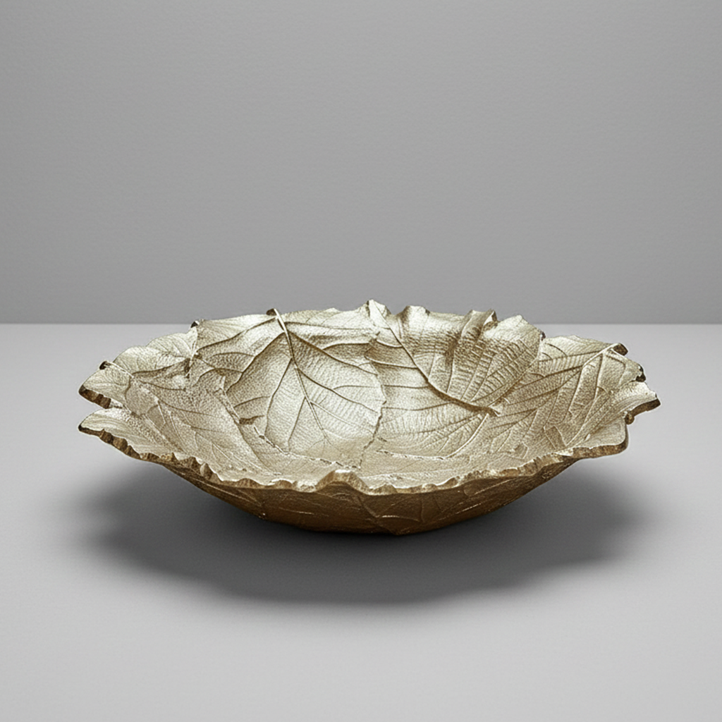 Inspiré de la beauté naturelle des feuilles, ce plat décoratif se distingue par ses nervures finement sculptées et sa finition dorée élégante. Son design organique apporte une touche raffinée et lumineuse à votre décoration, tout en s’adaptant à différents usages.