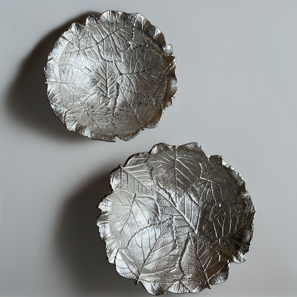 Inspiré de la beauté naturelle des feuilles, ce plat décoratif se distingue par ses nervures finement sculptées et sa finition argentée élégante. Son design organique apporte une touche raffinée et lumineuse à votre décoration, tout en s’adaptant à différents usages.