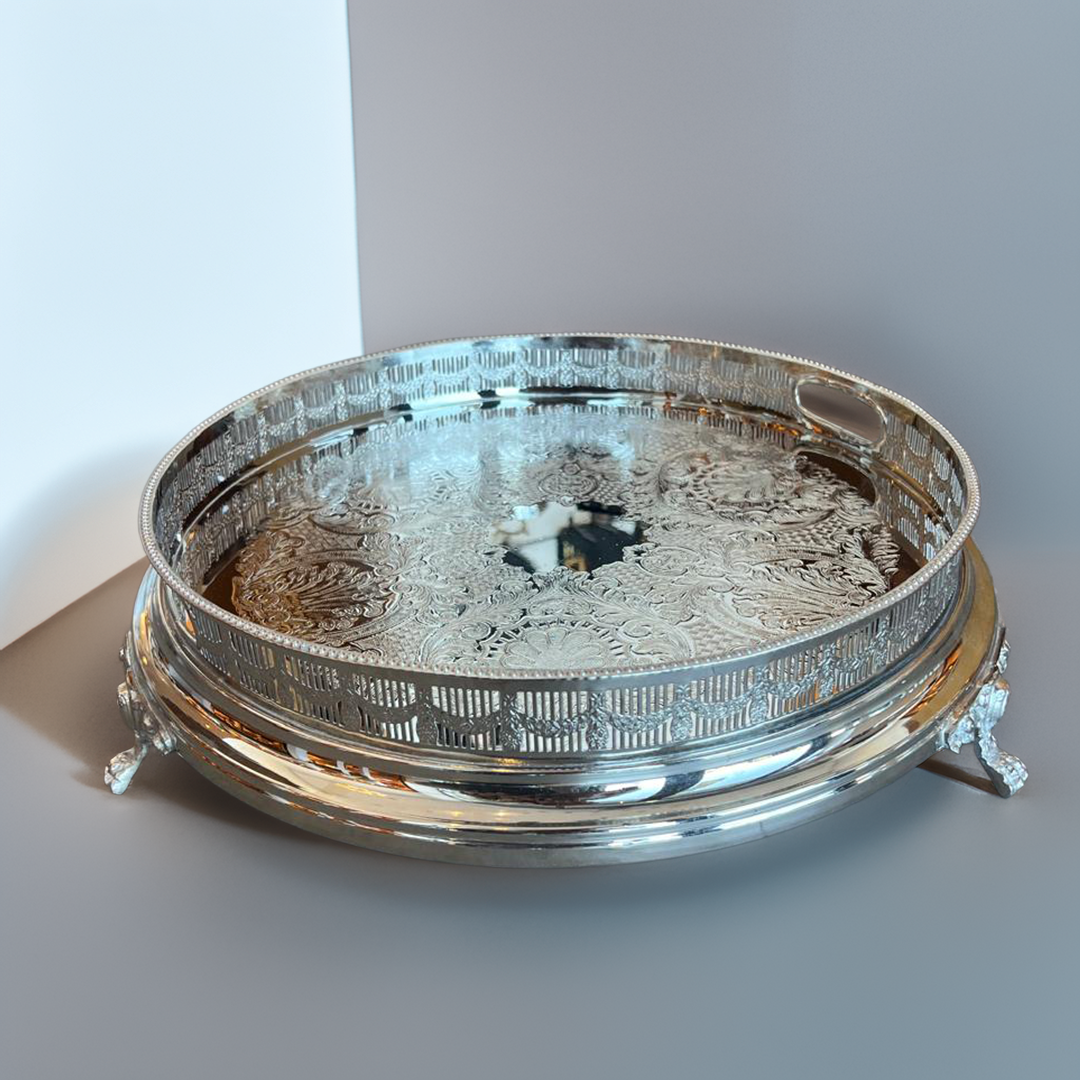 Ce plateau rond est idéal pour servir le thé à la marocaine avec élégance.